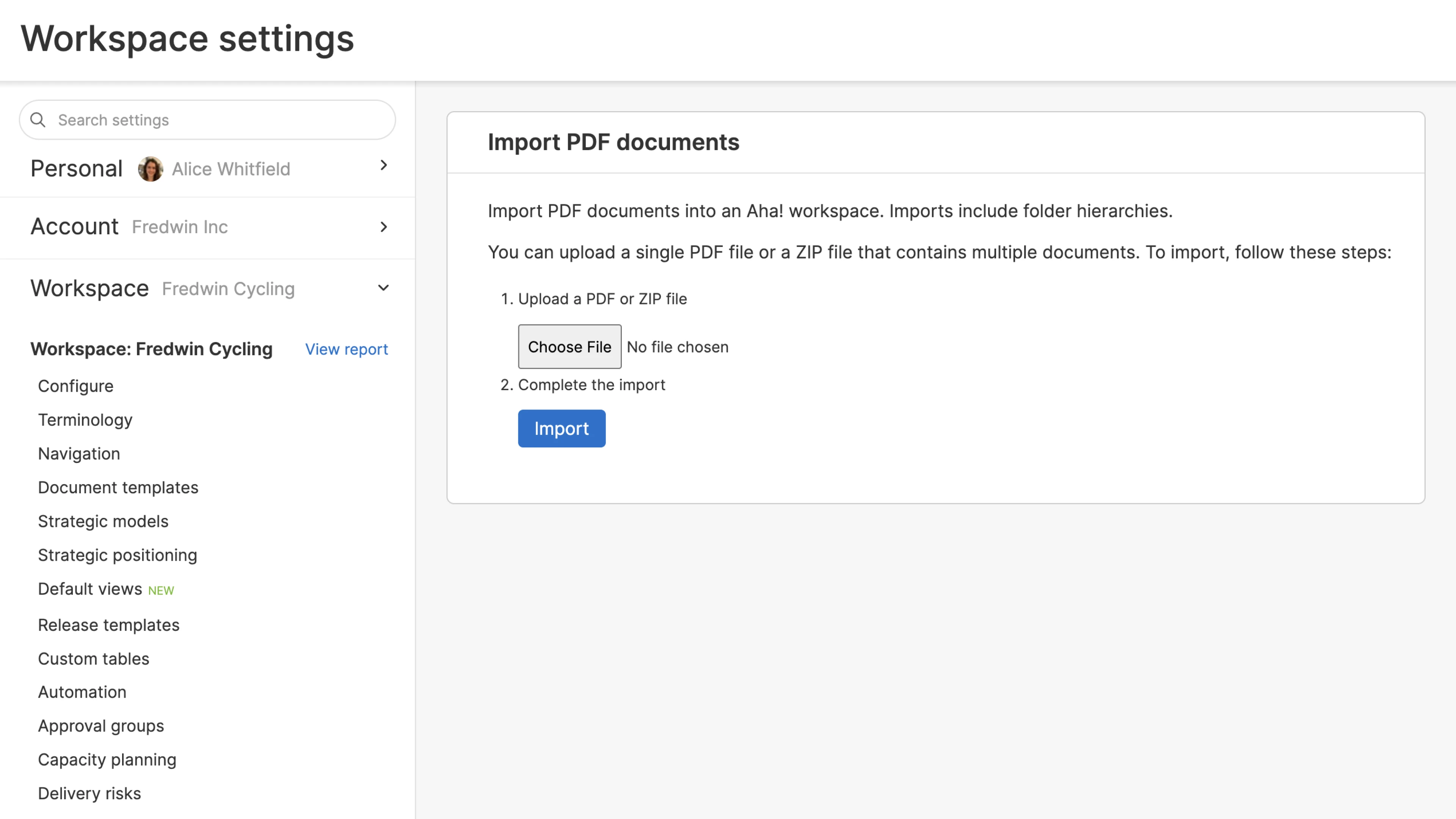 Store and share all your product documentation in a central location. Use our importer to quickly bring PDFs into your Aha! Roadmaps, Aha! Discovery, Aha! Ideas, Aha! Whiteboards, Aha! Knowledge, or Aha! Develop account. Organize them in your workspace folders or add them to a knowledge base — so teams and customers can find info fast.