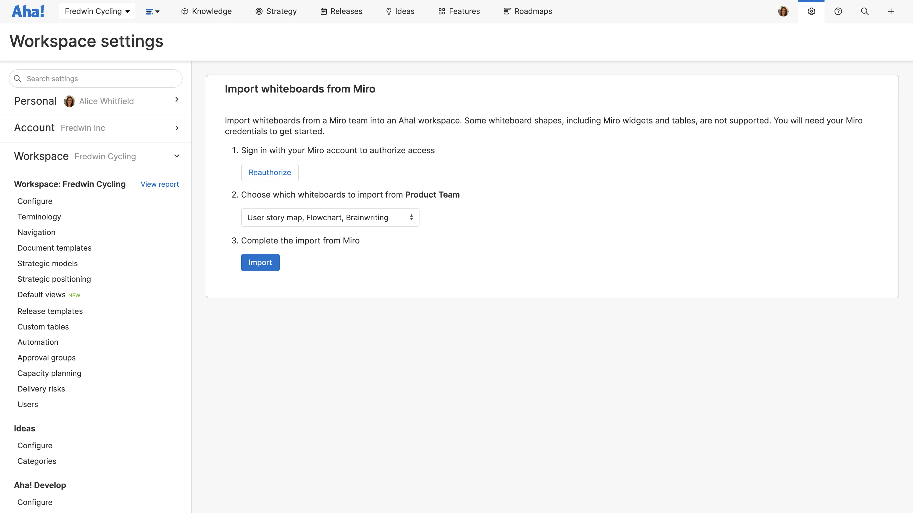 Migrate whiteboards from Miro to your Aha! account to connect visual concepts to your strategic planning. To import whiteboards from Miro: